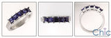 Solid high polished shank with five princess cut sapphire color high quality cubic zirconia in prong setting.