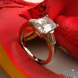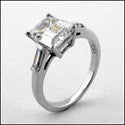 2.25 Emerald Cut Cubic Zirconia With Baguettes in Channel 14k White Gold Ring