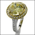 Eye-catching masterpiece set with AAA quality round canary center surrounded by pave set stones around the main stone as well as on the band.