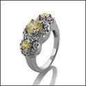 Anniversary Canary 3 Round Halo Pave Cubic Zirconia Cz Ring
