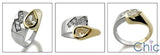 A two tone twist solid high polished shank with AAA high quality cubic zirconias, pear shaped in bezel setting, and round shaped in pave setting