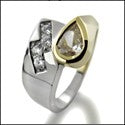 Cubic Zirconia Half Carat Pear Shaped Canary Bezel Two Tone Gold Anniversary Ring