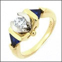Cubic Zirconia Round Center Triangle Sapphire Two Tone 14K Gold Ring