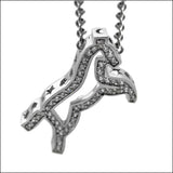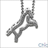 Cute horse pendant set with pave set AAA high quality round stones. The sides have star, heart and moon contoured openings. Around half an inch in height. Free 16-inch chain included with purchase of a pendant