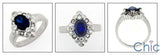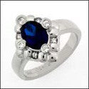 A stunning ring with a high polished solid shank and a high quality blue Sapphire oval cut cubic zirconia center stone in bezel-prong setting and round high quality diamond cubic zirconias in pave-bezel setting on the sides.