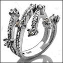 A glorious right hand anniversary ring with high polshed shank, with round cut AAA quality cubic zirconia stones set in prong setting, and with diamond color round cut cubic zirconia stones set in pave setting.