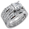 Extraordinary combination set that included 2 matching bands and an engagement ring, set with AAA high quality princess cut center, all sides have channel set princess cut stones. Total width of the set is 10.5 mm