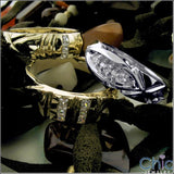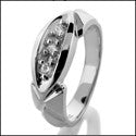 Men’s stylish ring set with three round AAA quality stones in prong setting.