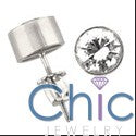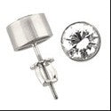 An attraCt ive high polished stud with round high quality white cubic zirconia in bezel setting.