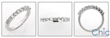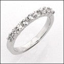 An exquisite wedding band with high polished solid shank and a row of high quality cubic zirconias in prong setting.