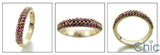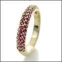 Stackable wedding band with dome shape, set with AAA high quality ruby color cubic zirconias in pave setting in 3 rows.