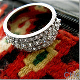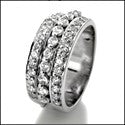 Wide band set with AAA high quality round stones in share prong and pave setting in 3 rows. The width of the bands is 8.0mm